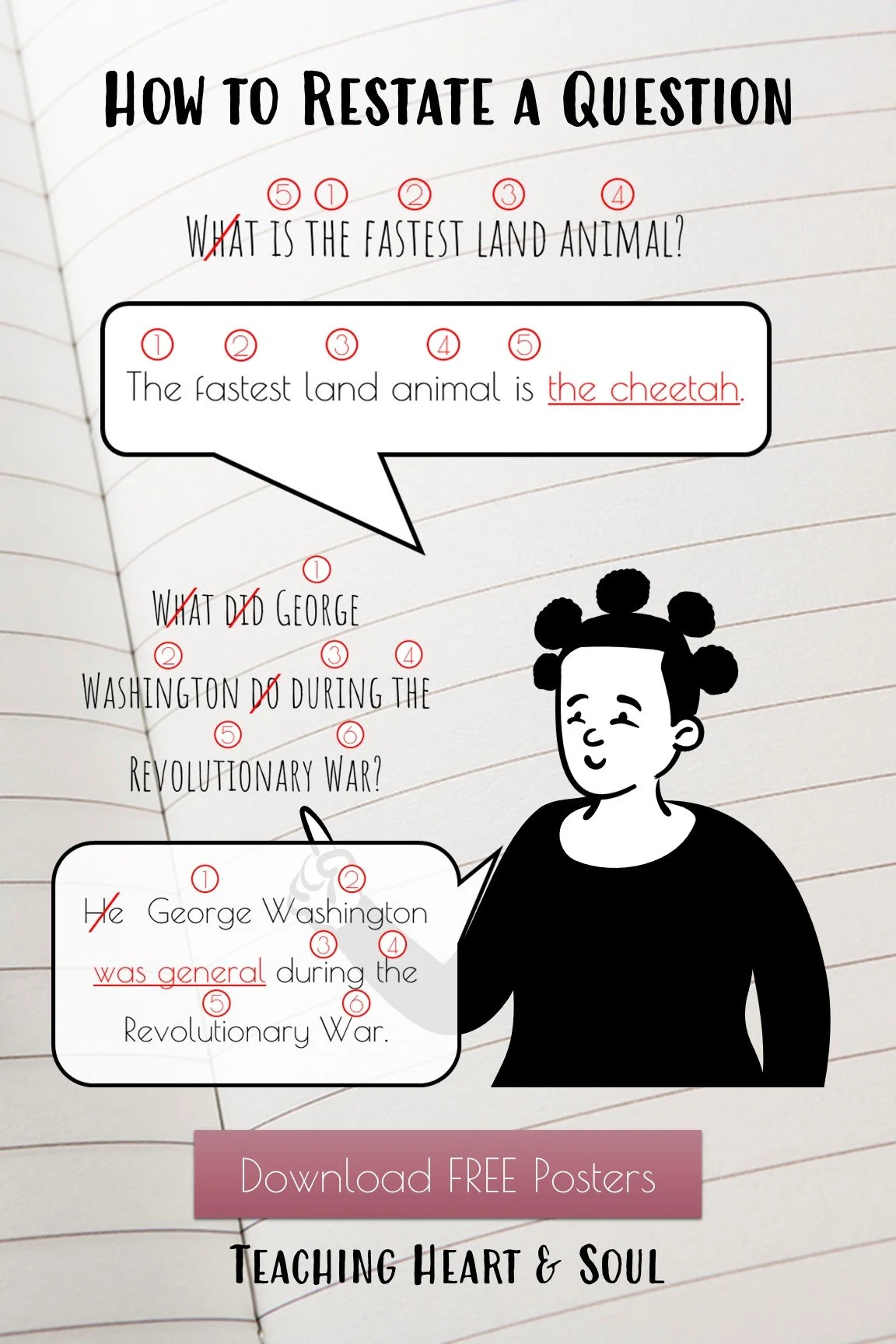 Before continuing on to the rest of the constructed response, make sure students can restate questions in a complete sentence. Practice this skill before moving onto the next steps.